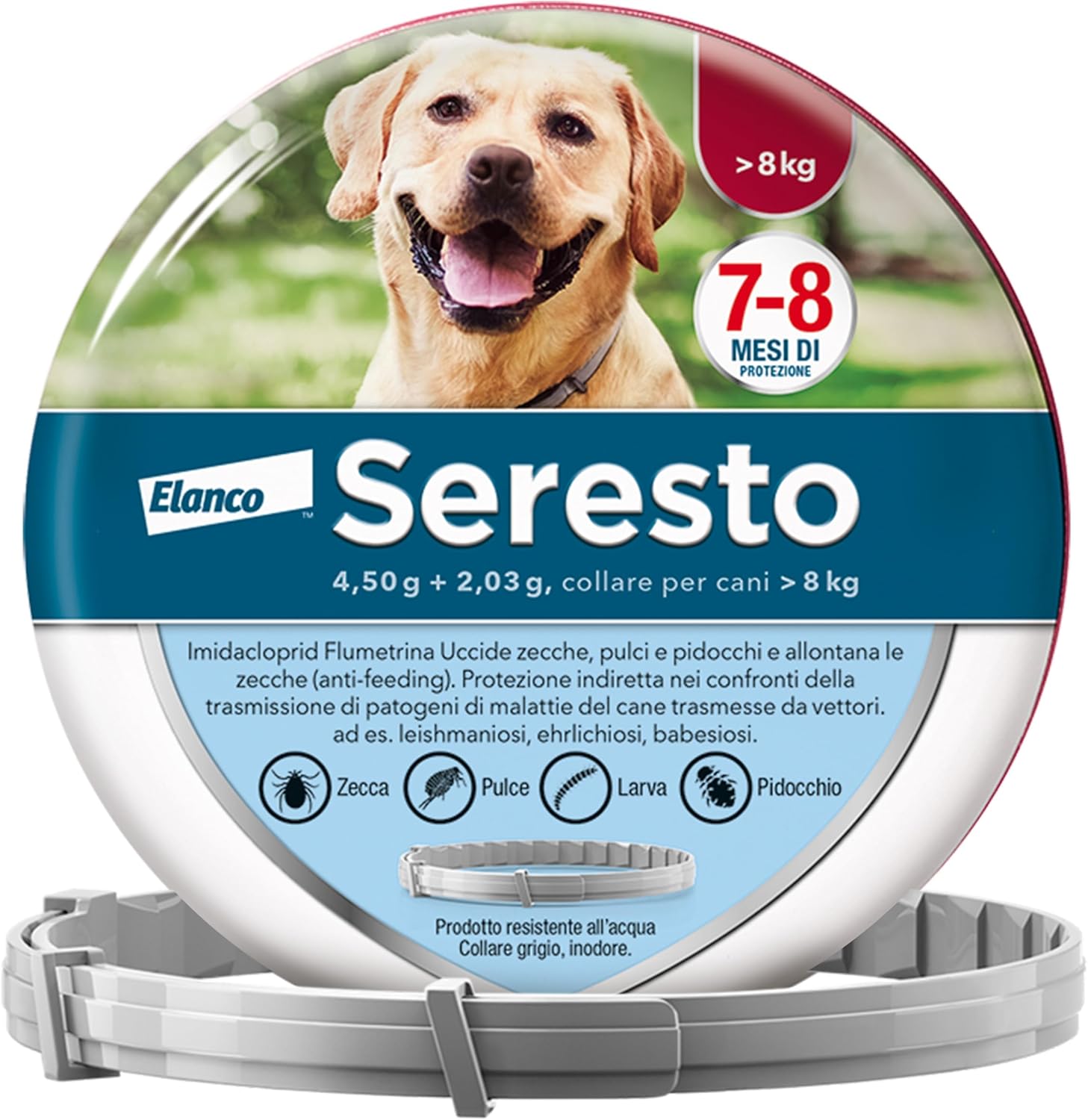 Scopri Seresto collare antiparassitario per cani oltre 8 kg: protezione continua fino a 8 mesi contro pulci e zecche per il tuo cane di taglia grande